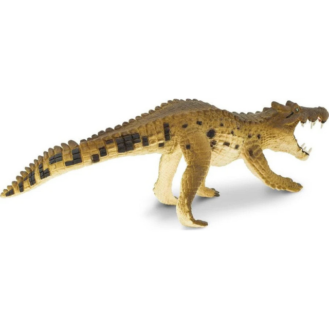 - Characteristics: Kaprosuchus was a meat-eating crocodylomorph - the group that includes modern crocodiles. It had long broad jaws filled with pointed teeth, including enlarged tusk-like fangs. Its strong jaw muscles provided a powerful bite. The body of this crocodile ancestor is unknown, but as Safari Limited's Kaprosuchus toy portrays, it was probably similar to other crocodylomorphs with four short legs and a long tail.