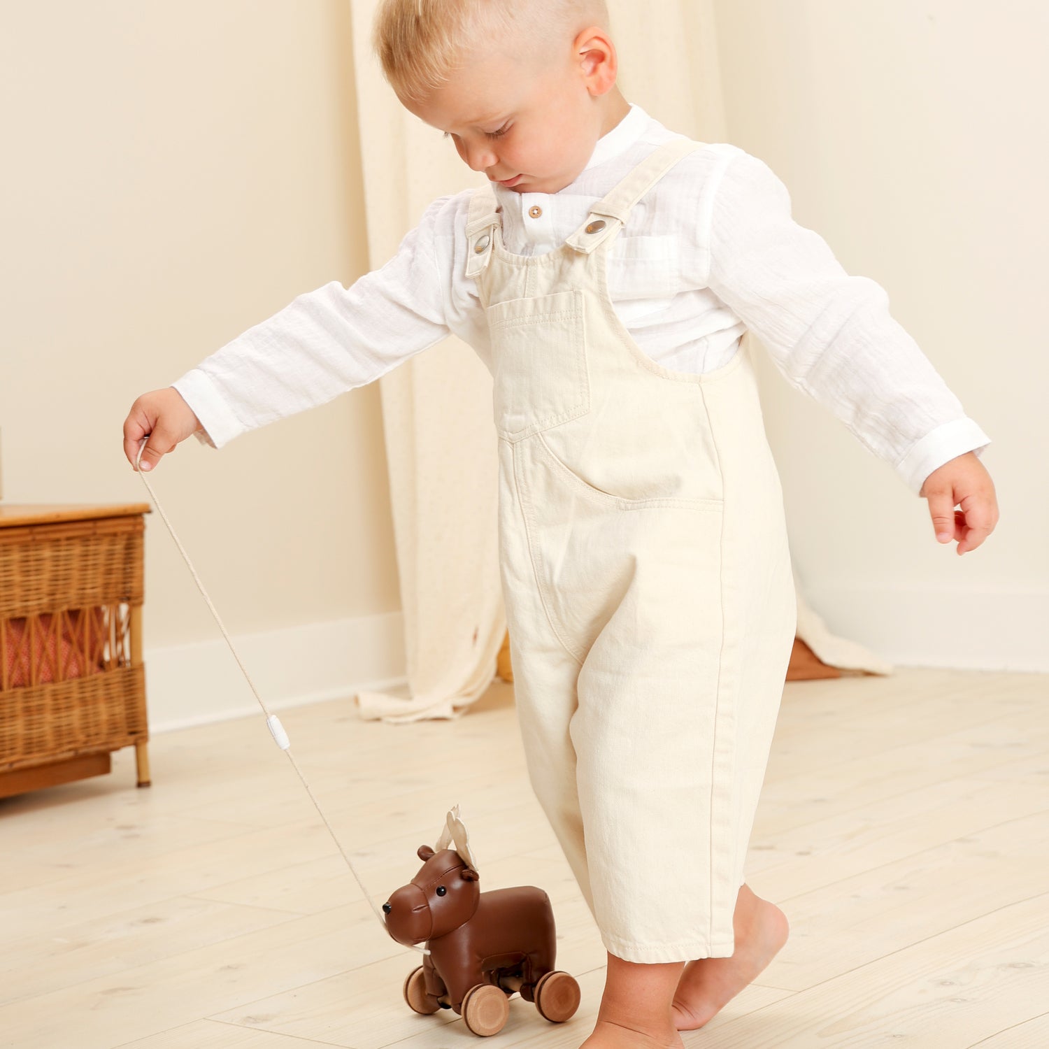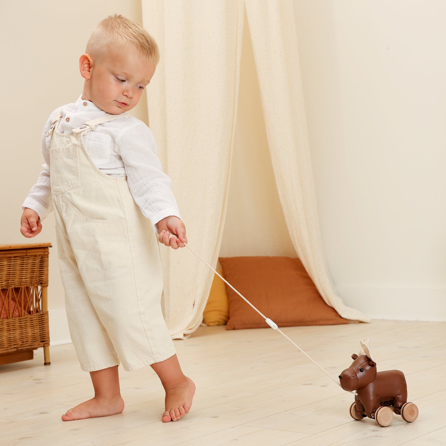 Animal friends who will follow baby everywhere! Their adorable retro look and supple, soft texture will make them one of your child's favorite toys. The double cord with detachable safety buckle keeps the animal at the right distance and adapts to the growth of the child.