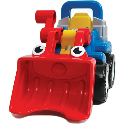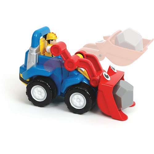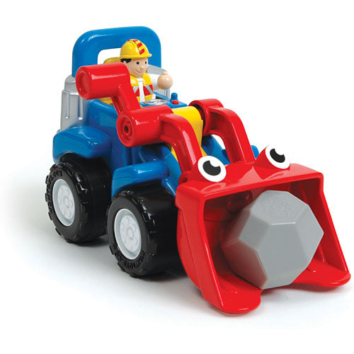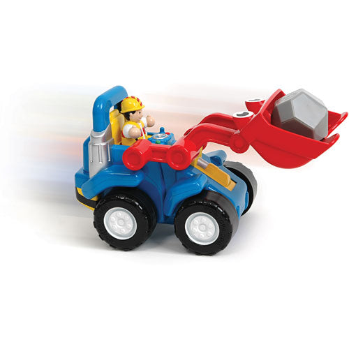 I may be little but I am super strong! Watch me pick up this big rattle boulder - push down the handle & up it goes - no problem. I whiz around any building site with my powerful friction motor, ready for the next job. Comes with removable driver figure & rattling boulder.