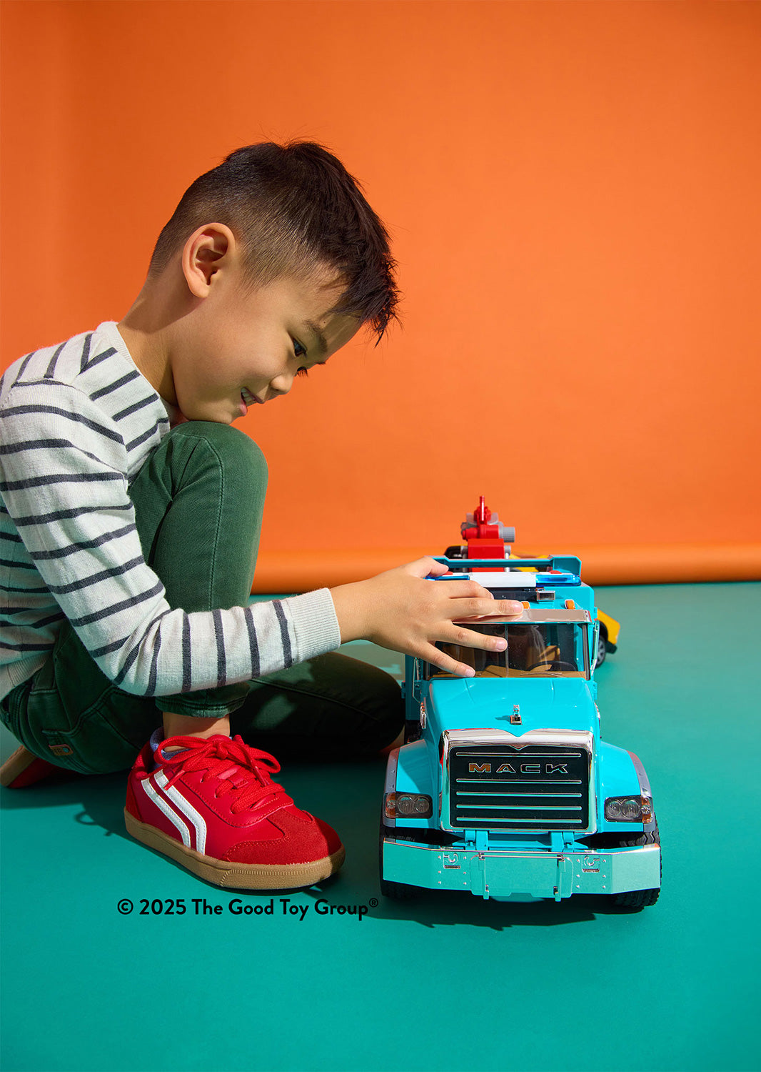 Put imaginative kiddos behind the wheel of this impressive tow truck that has ALL the realistic functionality and built-to-last durability we love about Bruder toys. At a sizeable 26.5" x 8" x 12", this 1:16 scale tow truck is ready for years of indoor and outdoor play adventures. It even has a light and sound module with 4 realistic sounds and 5 interchangeable caps! Kiddos feel like they're operating the real thing with functional doors, storage compartments, flip-open engine hood, stabilizer legs, knob to raise and lower boom, telescoping main arm, and a fully functional cable winch with hooks. Attach the included bumper adapter to other Bruder vehicles for hours of towing pretend play! This is guaranteed to be a memory-making WOW gift! Includes 2 AAA batteries for the light and sound module. Pair with other Bruder trucks to complete your fleet. Other vehicles and accessories sold separately.