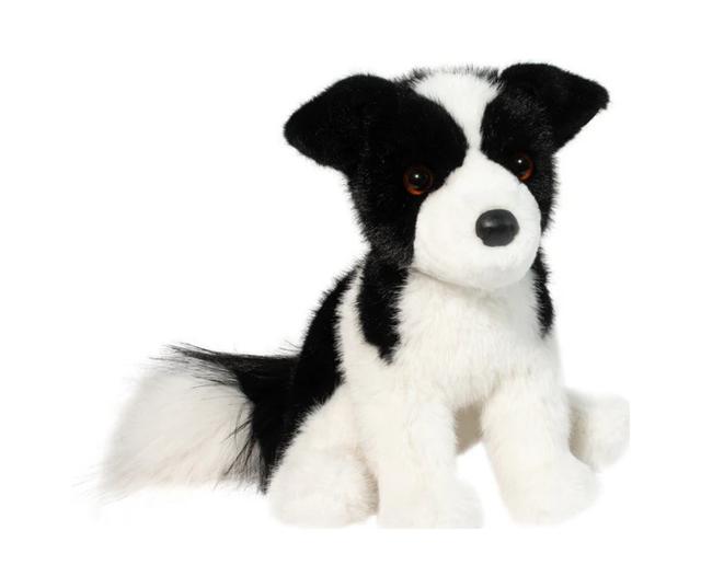 No sheep gets left behind when Herdie the Soft Border Collie stuffed animal is on the job! This bright-eyed, perky-eared sheepdog is a pro when it comes to keeping the flock together! She'll catch your eye with her striking black and white coat and beautiful, fluffy tail. Fantastically soft and boasting floppy paws and a weighted bottom, Herdie's design invites interaction. Sit her up at attention or let her snuggle comfortably into your arms.