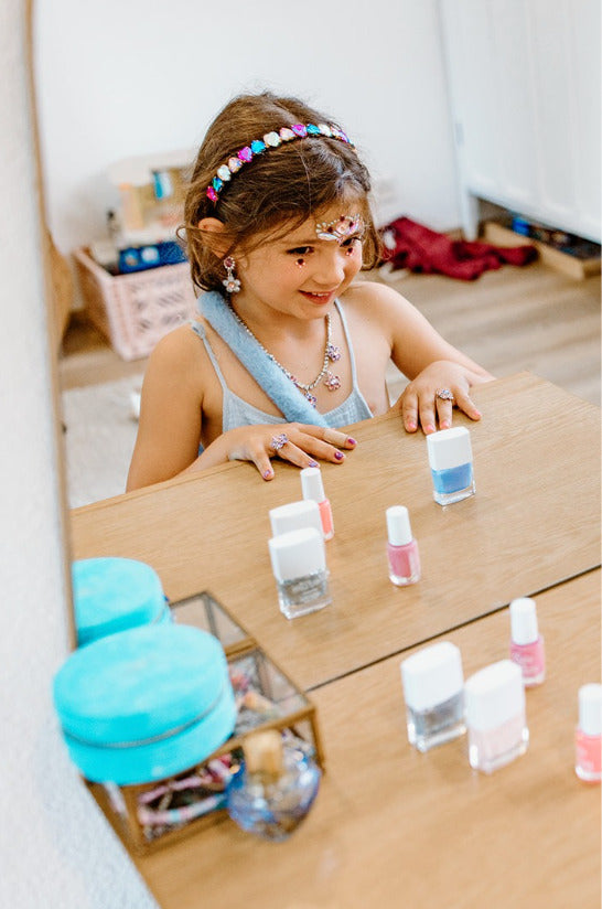 The Boutique Heartbreaker Headbands are a stylish accessory for young fans of all things whimsical! Inspired by Taylor Swift, these enchanting headbands feature alternating heart gemstones, with vibrant blue and purple gems paired with sparkling clear stones. Perfect for adding a touch of magic to any outfit, these headbands are comfortable and designed for all-day wear. Whether dressing up for a special occasion or just adding flair to everyday outfits, these headbands are sure to make any little heart sing!