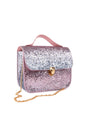 Shine bright with our Skyline Sparkle Party Purse, the perfect accessory for every little fashion star! This dazzling purse features an all over glitter finish that sparkles beautifully in the light. A gold chain strap and matching gold button closure add an elegant touch, while the pink top handle gives the option to carry it as a stylish handbag. Ready for parties, outings, and every glamorous moment, this purse brings instant sparkle to any outfit!