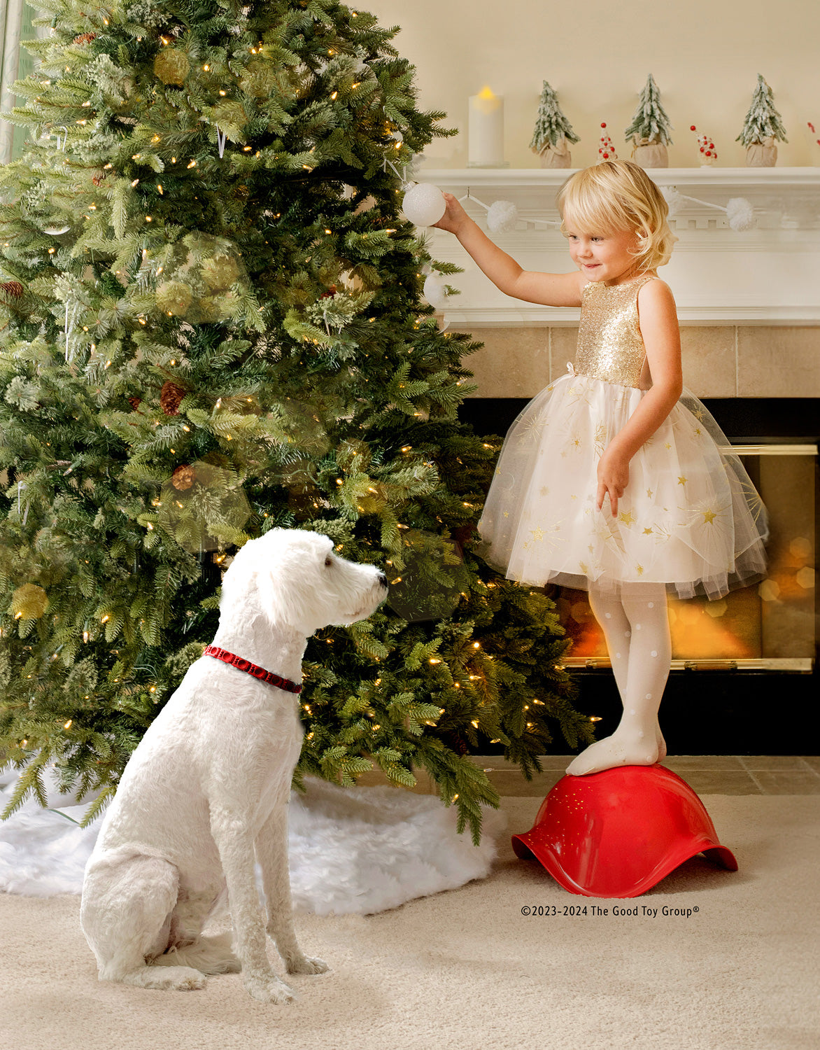 Looking for the perfect holiday dress, or to add some sparkle to winter pretend play? This glamorous dress features a glittery gold top and a multi-layered skirt with an array of shiny gold stars. The lightweight fabric gives your little pretender the perfect hint of whimsy and magic. It's beautifully crafted yet built for years of imaginative play adventures. Pair with the Golden Glam Party Cape for extra star power! Sold separately.