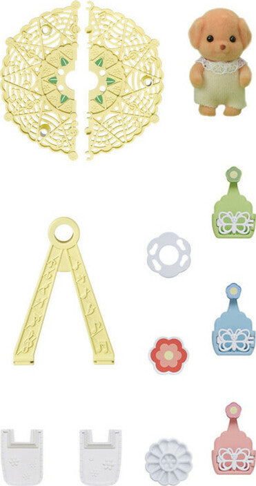 Imaginations soar in the pretend play world of Calico Critters. Get started or expand your collection with a Baby Ferris Wheel! This fun pastel playset spins around and around with a manual knob, and includes three gondolas for babies. Kiddos spend hours in Fairground pretend play, having babies take turns riding the Ferris Wheel! Includes poseable Milo Toy Poodle Baby dressed in removable clothing; other Critters sold separately.