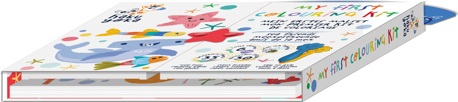 MY FIRST COLOURING KIT / SEA FRIENDS, including 6 smile crayons, 35 coloring sheets and removable stickers, in beeswax (10%), 3+