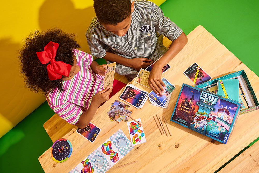 Gather your family for two fun, cooperative escape room games featuring five brave superhero animals. Think outside the box as you work together to solve riddles, decipher puzzles, uncover clues, and unlock doors. In the first adventure, work together to solve the mystery of the missing animals at Meanstone Manor! Then take your puzzle-solving powers to Candy Castle to uncover the secret behind sickening sweets. Each escape adventure takes approximately 45-75 minutes to solve, and can only be played once. For 2-4 players.
