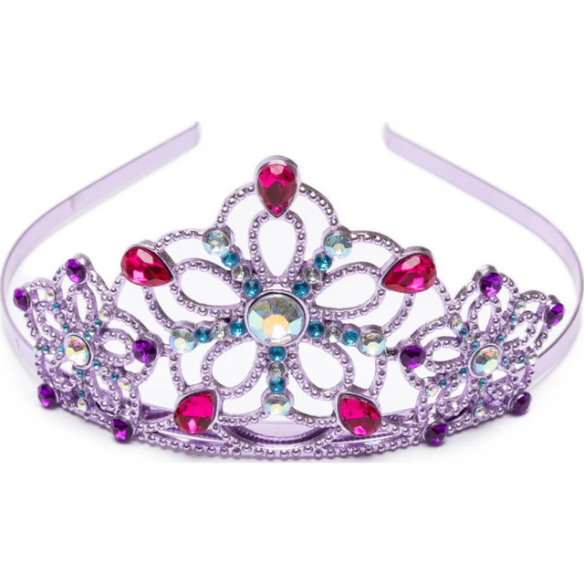 A tiara makes you feel special, adds that extra needed flare to regular school outfits. So why not go all the way! Our Great Pretenders lilac metal tiara is bedazzled with jewels and gems. Featuring faux rhinestone and gem detailing, this gold tiara completes any princess costume or just for everyday wear depending on your princess needs.