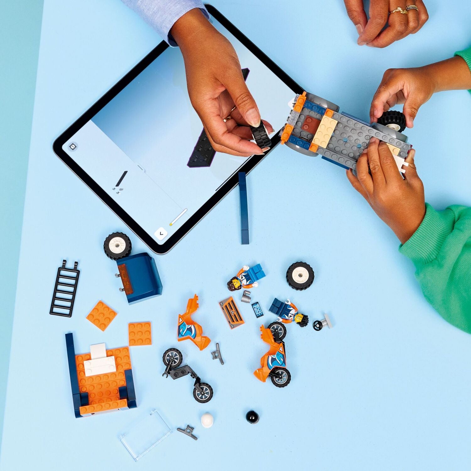 • KIDS' TOYS FOR ROLE PLAY – Kids can seat a minifigure in the cab of the flatbed truck toy and attach the ramp to load and unload the 2 model motorcycles