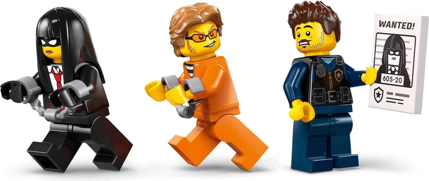 • JAILBREAK ESCAPES – Kids can put the police driver minifigure in the toy van, lock crooks in the onboard cell and use the model motorcycle hook to pull off the cell door for epic escape action