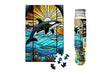 Piece together this beautiful stained glass portrayal of a magnificent orca leaping out of the ocean against a dazzling sunrise. The vibrant colors combine to create a charming scene. Delightful and perfectly compact.