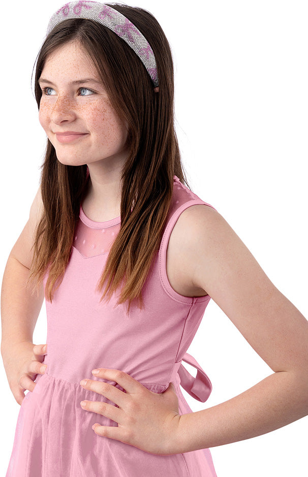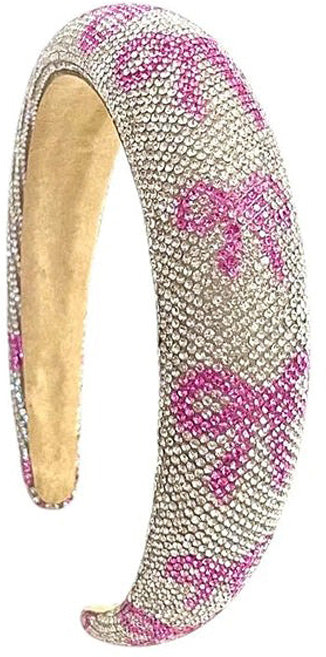 Hey fashionistas, we have hair flair for you! Express your style with a super sparkly headband with pink bows. Wear it to parties, school, sleepovers, when putting on a living room concert... you name it. Pair with other Bejeweled Bow items like the Bow Varsity Bag.
