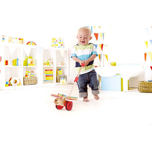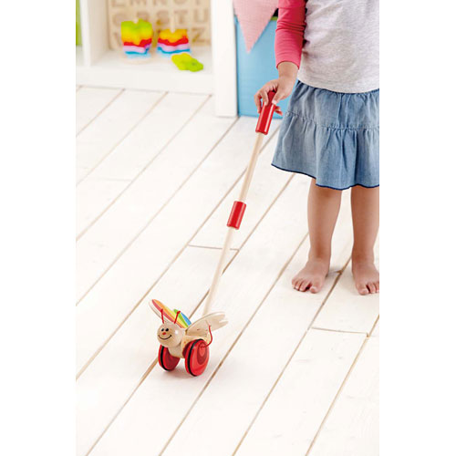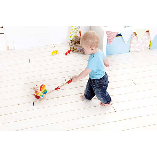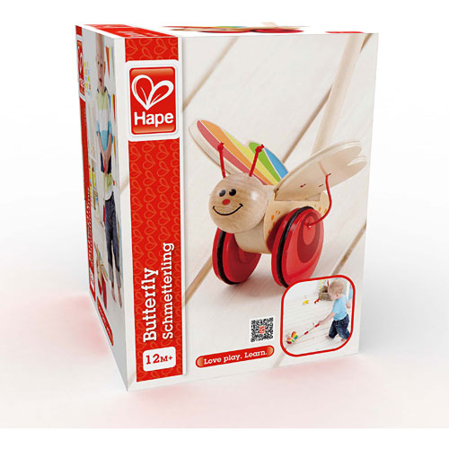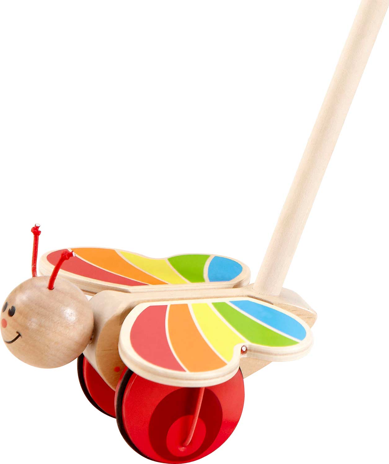 Hape's Butterfly Roller flutters and flits its beautiful wings with just a push or pull. Your little ones will be delighted to get up and walk along with the happy fluttering of this Butterfly Push & Pull toy. As the Butterfly Push & Pull is moved, a special mechanism attached to the wheels makes the wings flutter. Hape's Butterfly Push & Pull is crafted according to the hallmark high-quality standards of Hape Toys, so you know its durable and built with sustainable practices in mind. For ages 12 months and up.