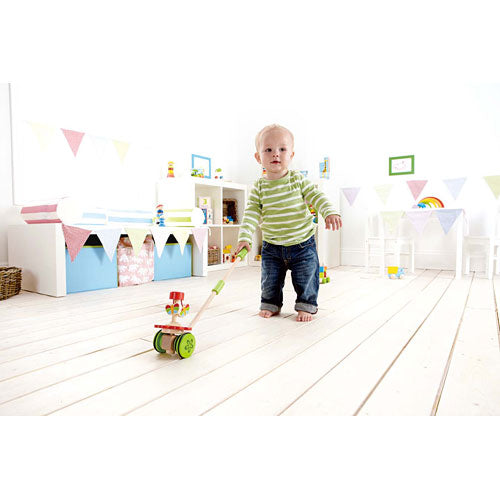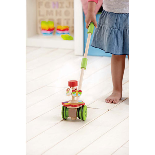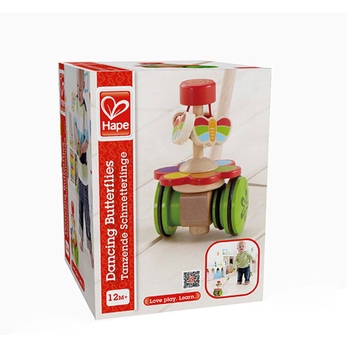 As youngsters move the Dancing Butterflies Push & Pull, a mechanism in the walker gently spins the flower, making the butterflies dance. Kids can walk with the butterflies, dance with the butterflies, or both! The Dancing Butterflies Push & Pull is made with Hape's high quality signature standards, from Baltic Birch plywood and solid Maple from FSC-managed forests. Hape's Push & Pull toys are fantastic for getting little ones up on their feet and moving around, wobbly beginning walker or otherwise!