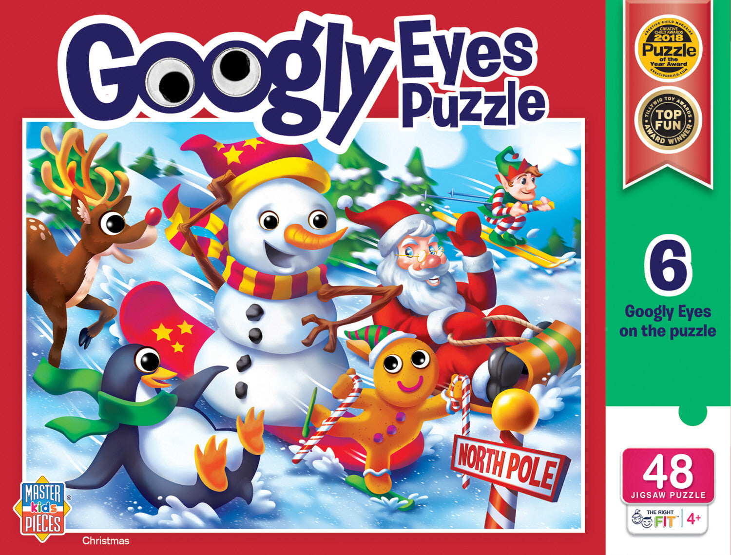 • Googly Eyes puzzle featuring Santa and his Christmas crew in a slipping, sliding, skiing, sledding, sleigh race