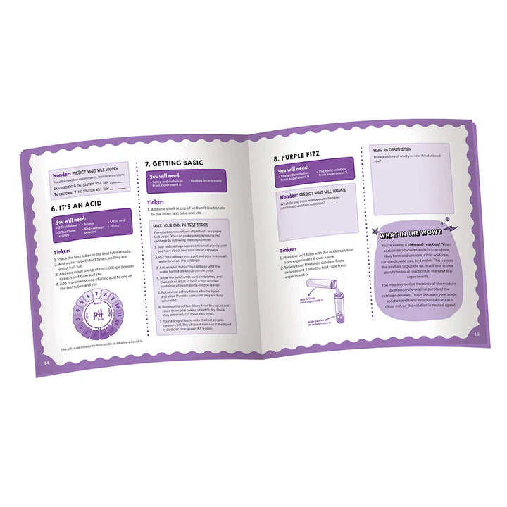 The science journal takes you through each experiment step by step and provides explanations of the phenomena at work. Exclusive audio content from Wow in the World’s Guy Raz and Mindy Thomas guides your journey, introducing each set of experiments and inspiring your wonders!