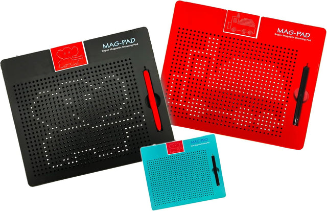 The Mag-Pad Drawing Board is great for keeping kids creatively engaged on rainy days, long car trips, or just about any other situation! Simply draw the magnetic stylus across the bead-board to bring the ball bearings to the surface, creating a picture of whatever you please. It even includes 52 suggestion cards to help kick-start artistic inspiration!