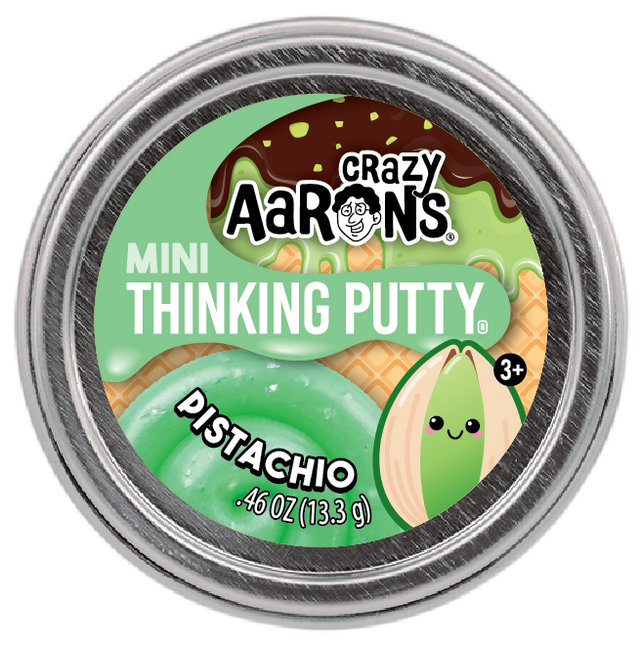 Crack open the fun with Mini Pistachio Thinking Putty®! Glimmering in soft pistachio green with silver glitter, this putty is ready to stretch, squish, and feed your creative hunger
