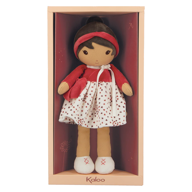 The Emilie Fabric Doll – 32 cm by Kaloo embodies elegance and softness. With her charming red cardigan and heart-patterned tiered skirt, she reflects joy and tenderness. Made from 89 % recycled materials, including micro-velvet and poplin, it meets the expectations of environmentally conscious consumers. Packaged in a customizable gift box, this doll is machine washable at 30 °C, ensuring hygiene and durability. It is a strategic choice for retailers specializing in premium baby products.