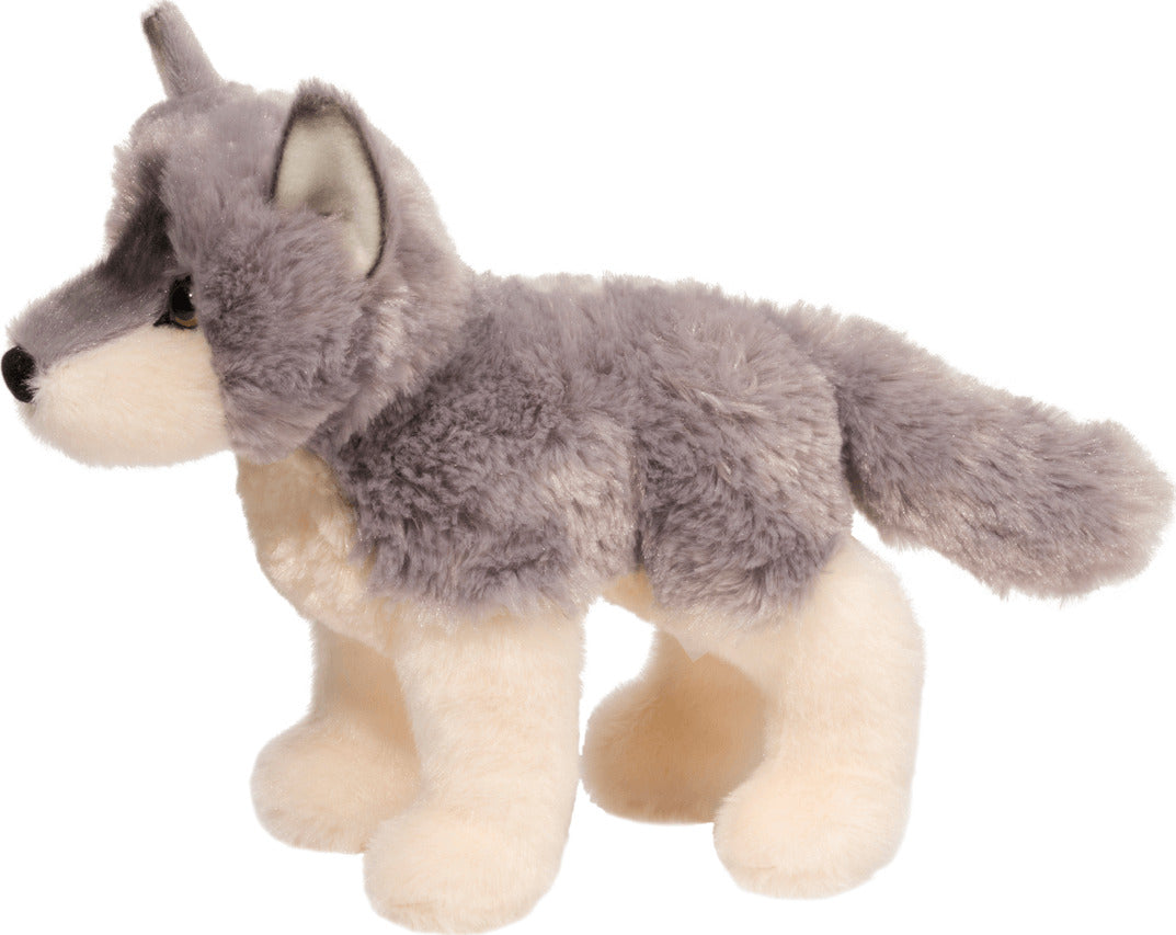 Ashes is a little plush Wolf pup and, though his howl may be tiny now, one day he hopes to sound just like his fellow pack members! Until that day comes, you can find him playing with his brothers and sisters and joining in with the chorus of wolf song when his family does group howls. Soft and realistic, cuddly plush materials in colors of gray and cream have been selected to depict this little nature baby. Bright eyes and a dark, flocked nose along with airbrushed accents on his ears give Ashes an engaging appearance that will win the hearts of wolf lovers everywhere. Sing the song of the wild with Ashes the Wolf stuffed animal!