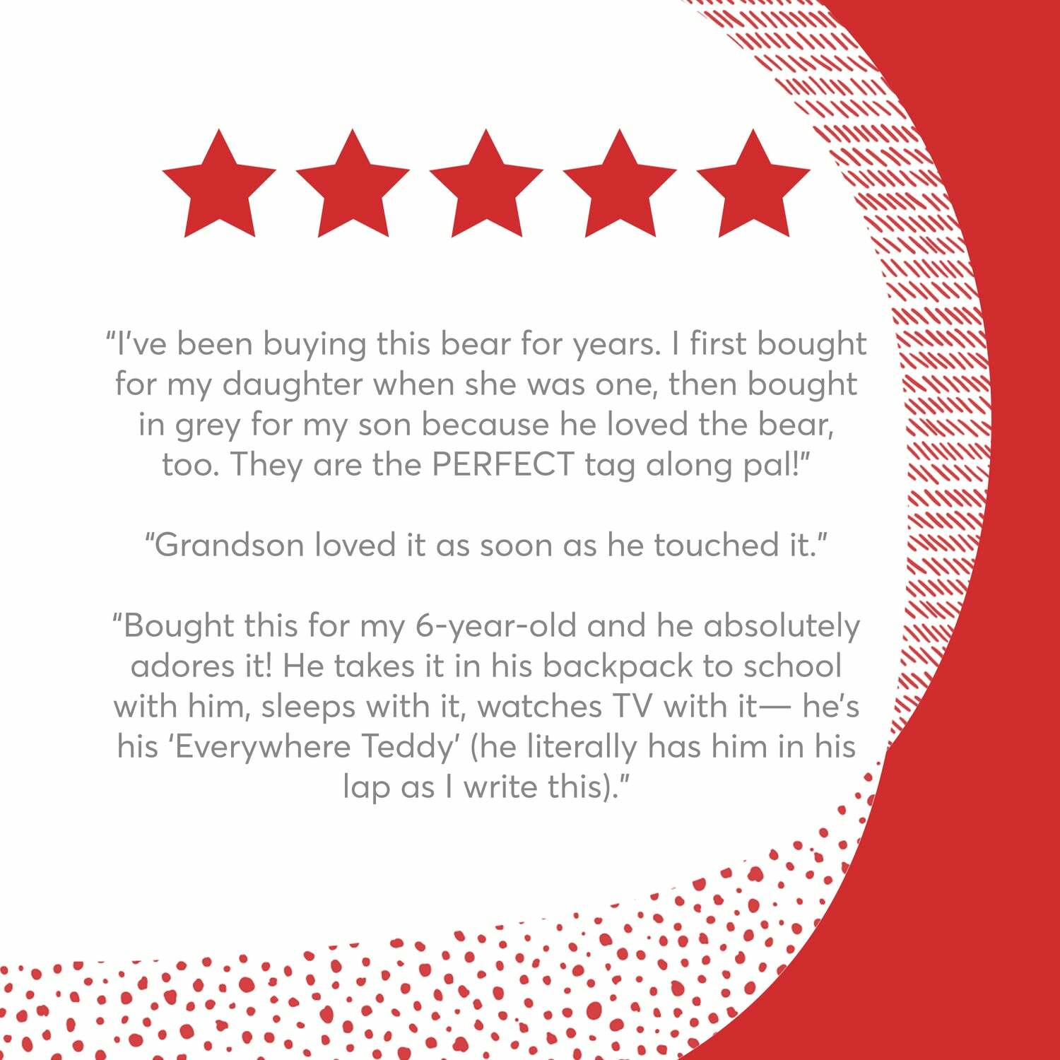 Fuzzy is the bravest bear who's ready for any adventure with you! This 13.5-inch Fuzzy teddy bear is the perfect size for cuddling, room decoration, and more. Fuzzy features adorable floppy arms and legs, round ears, and a cute sideways smile, making him perfect for any generation of teddy bear lover. Like all of GUNDS' classic teddy bears, Fuzzy is appropriate for ages 1 and up. This adorable teddy bear boasts surface-washable construction for easy cleaning.