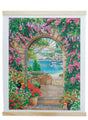 Introducing our mesmerizing Crystal Art Scroll Kit: "Window to Paradise," a captivating scene that transports you to a serene oasis of natural beauty and tranquility. A floral decorated archway is your view to a glistening blue ocean with boats ready to set off to sea. A view of a mountain positioned with amazing homes and hotels beckons you to come and stay awhile.