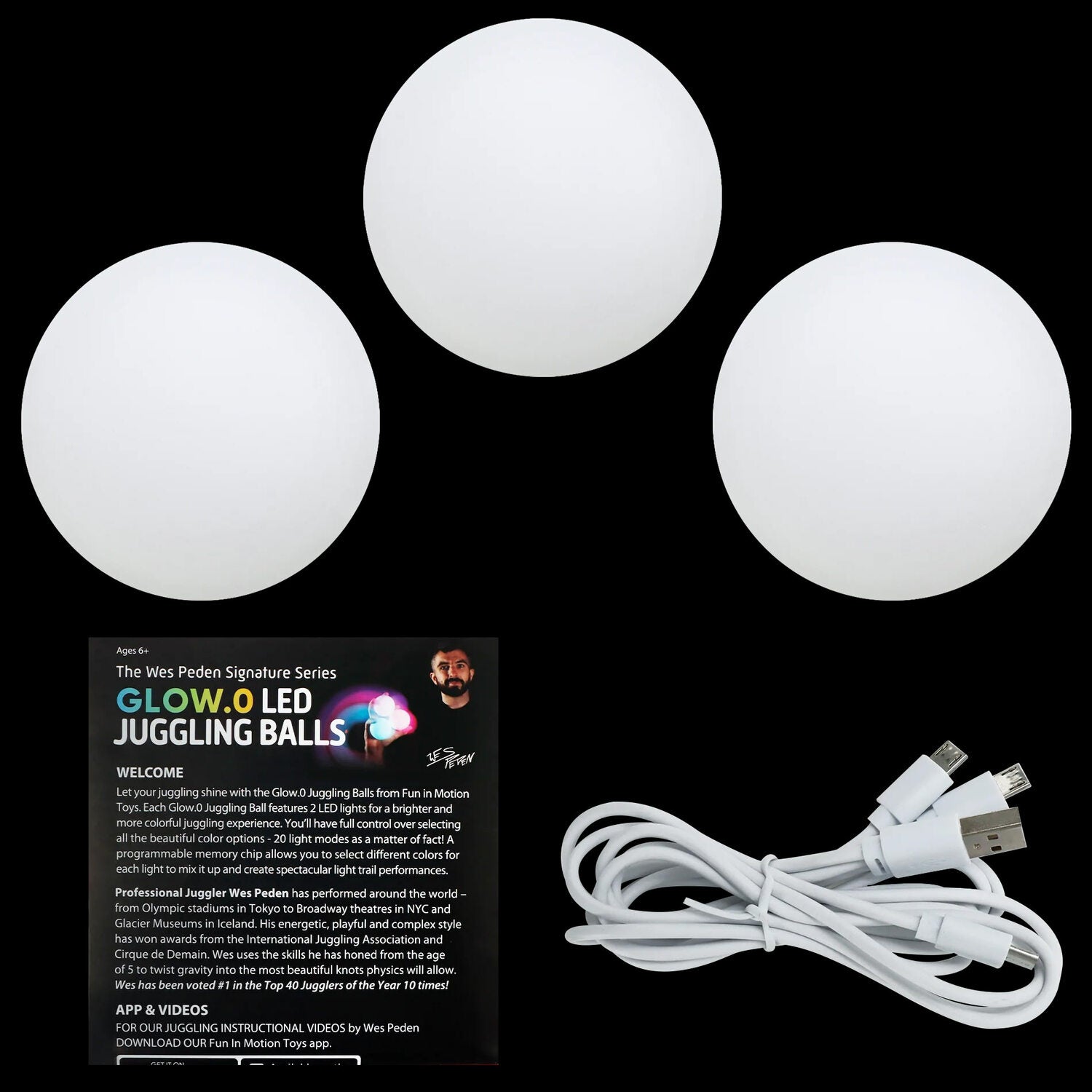 Let your performances shine with the Wes Peden Signature Series Juggling Balls. Each Glow.0 Juggling Ball features 2 LED lights for a brighter and more colorful juggling experience. You’ll have full control over selecting all the beautiful color options or customizing your light modes.