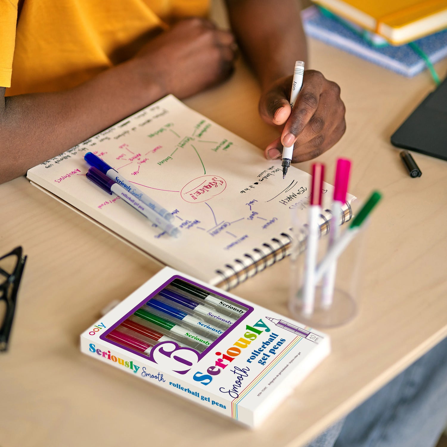 Experience effortless writing with the Seriously Smooth Rollerball Gel Pens! This set of 6 delivers a premium writing experience with fluid, consistent ink flow that glides across the page. Unlike ballpoint pens, these rollerball pens use water-based gel ink for bolder color, smoother strokes, and less pressure—making them perfect for long writing sessions.