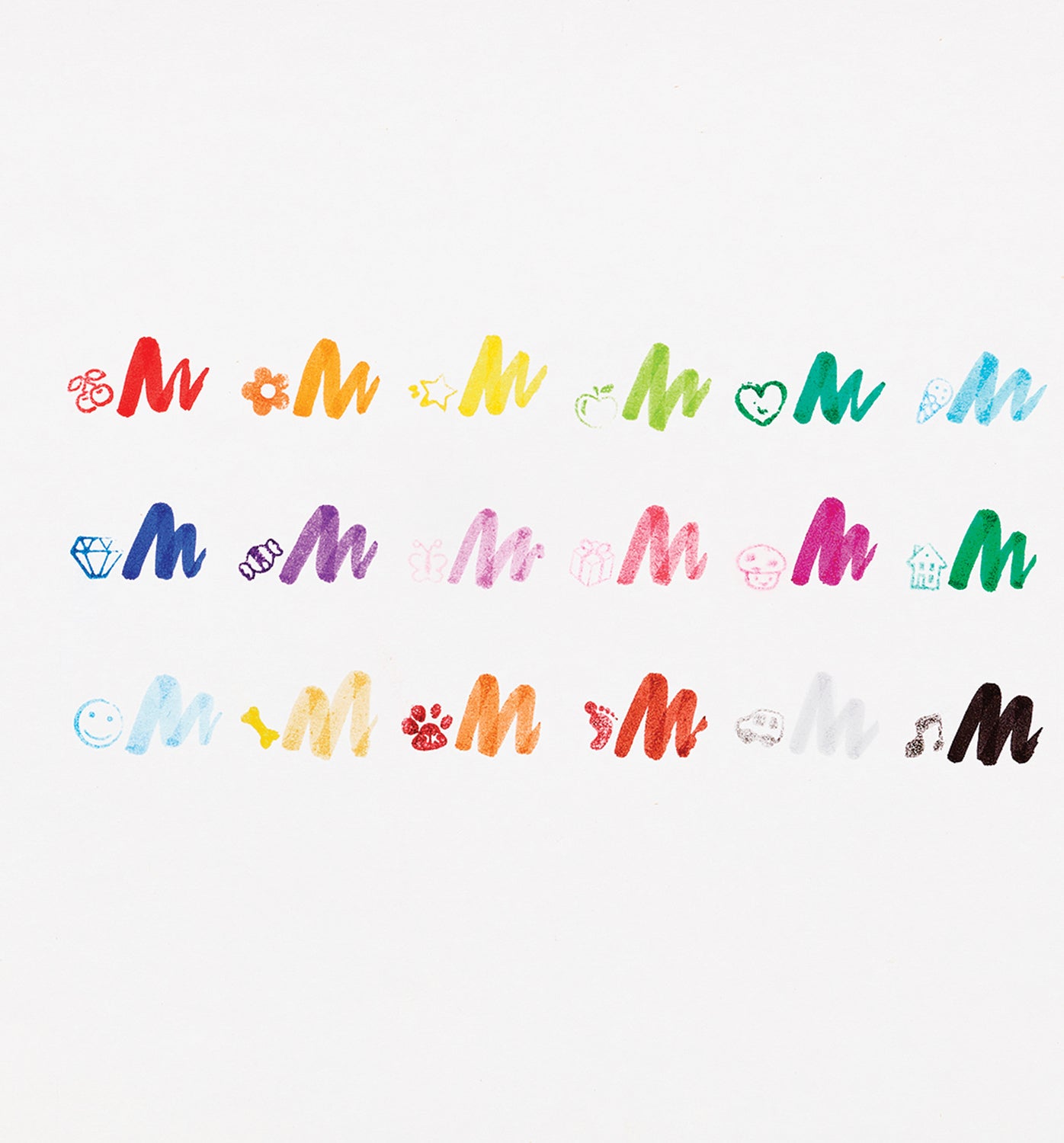 Add a little something extra to your already remarkable drawings and coloring book pages. This set of 18 Stampables Double-Ended Markers gives you twice the fun. Smooth, vibrant color on one end, and playful, silly stamps on the other mean you're getting 18 colors and 18 stamps all in one adorably fun set of markers. Stamps include gift boxes, smiley faces, mushrooms, and paw prints - just to name a few.